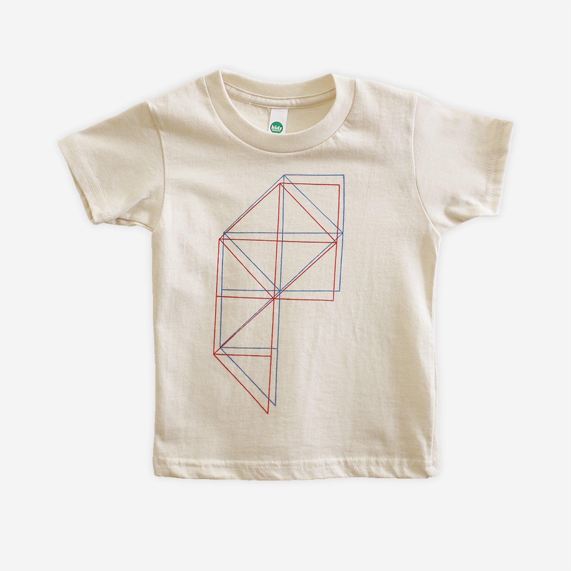 Organic kids t-shirt with blue and red ink print. The perfect unisex gift.