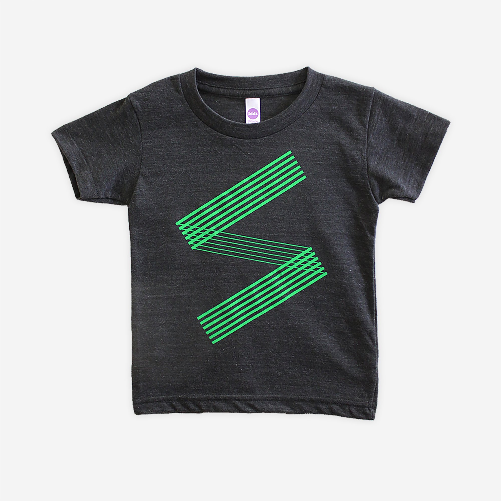 This is SU-PA- ("super" in Japanese) our tri-blend black kids t-shirt with neon green ink print. The perfect unisex gift.